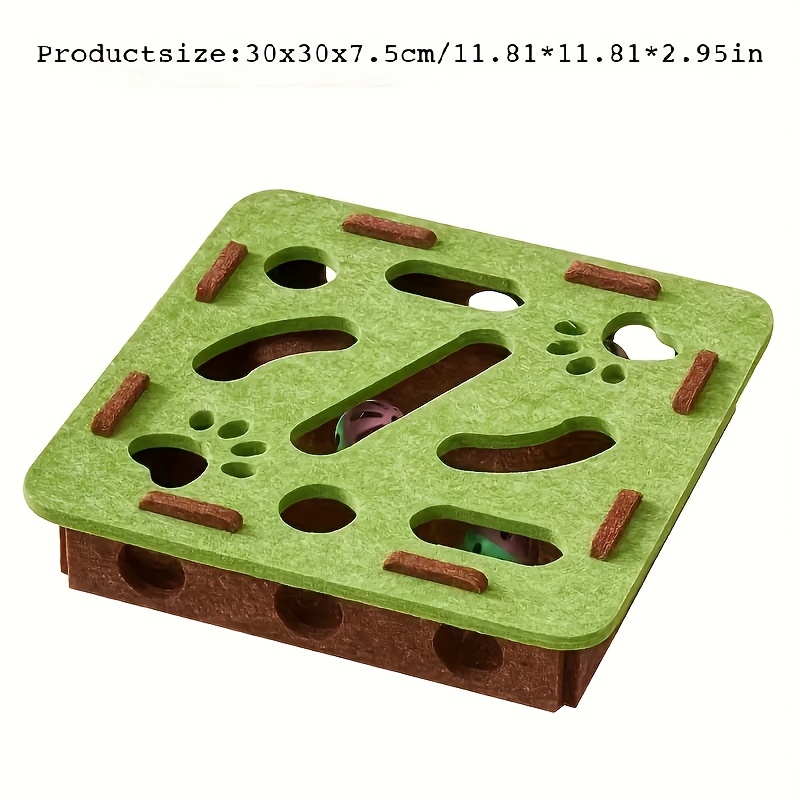 TEMU 고양이 재미 상자 - 발자국이 있는 상호작용 스크래치 및 파기 장면, 고양이 유혹 장난감, 내구성 있는 실내 고양이 퍼즐 게임, 정신 자극 및 신체 활동, 2개의 공 장난감 포함 (랜덤 색상), 재미있는 디자인, 배터리 불필요