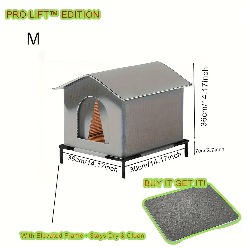 TEMU 단열 폼 층이 있는 야외용 고양이 집 개 사육장, 무료 보온 패드 포함, 조립이 쉬움. 방풍 옥스포드 천 쉼터, 봄, 여름, 가을, 겨울에 적합한 8가지 시나리오, 고양이, 토끼 및 기타 반려동물용 범용 캣하우스