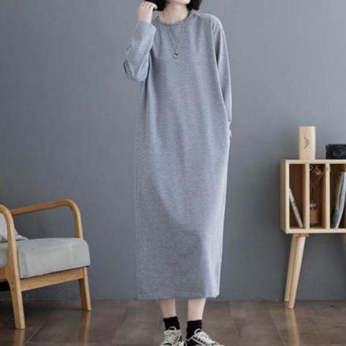 [셀럽하우스]맨투맨 AECL6375 원피스 일자핏 여성 맥시 롱 긴팔 홈웨