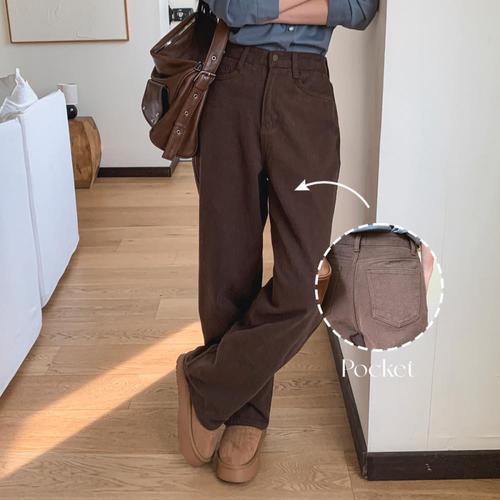 [옷자락] 여자 데일리 기모 코튼 무지컬러 일자핏 면바지