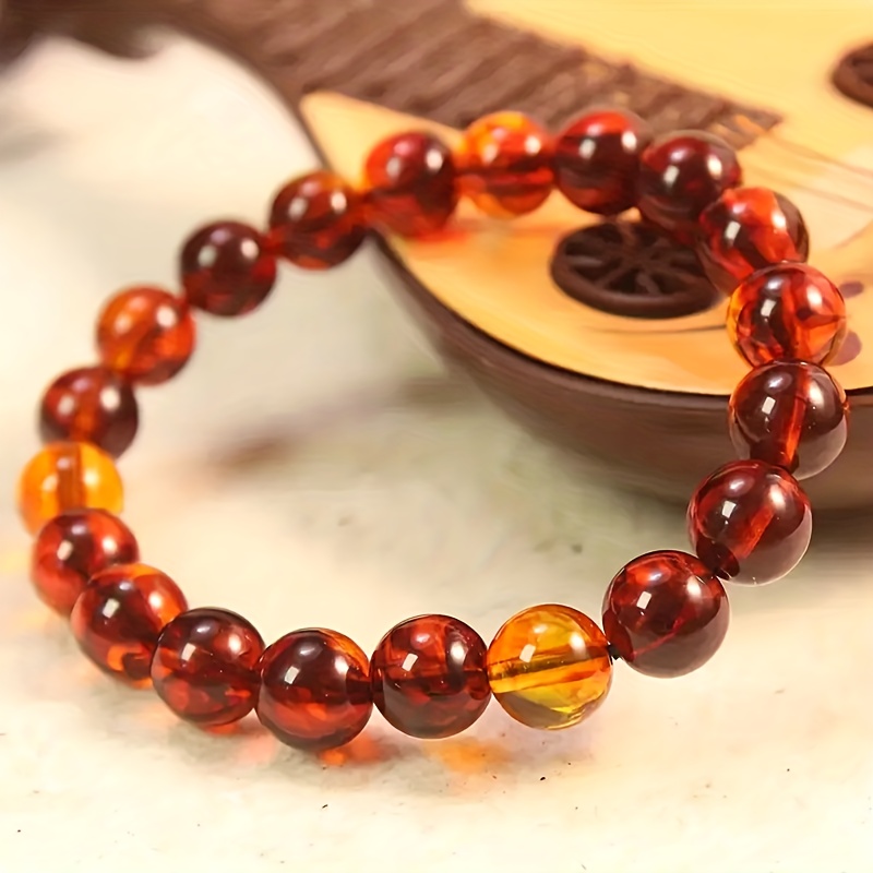 TEMU 천연 호박색 비즈 팔찌 - 스타일, 또는 특별한 날에 완벽, 남녀 공용 선물, 남녀 공용 주얼리, 천연석 팔찌