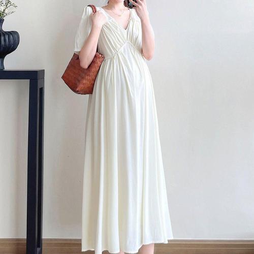 여성 여름 하객룩 임부복 롱원피스 반팔 원피스 단정한스타일