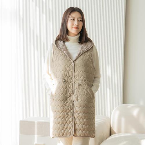 엄마옷 마담4060 허리스트링누빔롱후드조끼-QVE2511023-