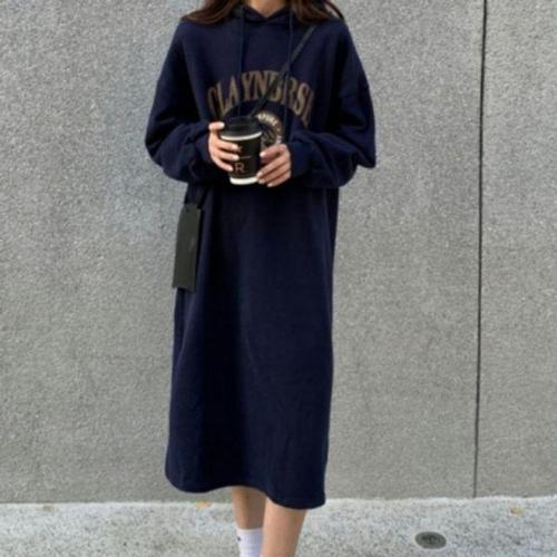 캐주얼 임산부 안감 원피스 후드 귀여운 레터링 WFLMT65