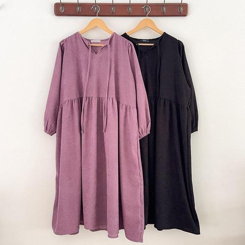 [옷자락]여성 골덴 롱 원피스 리본 퍼프 빅사이즈 임부용