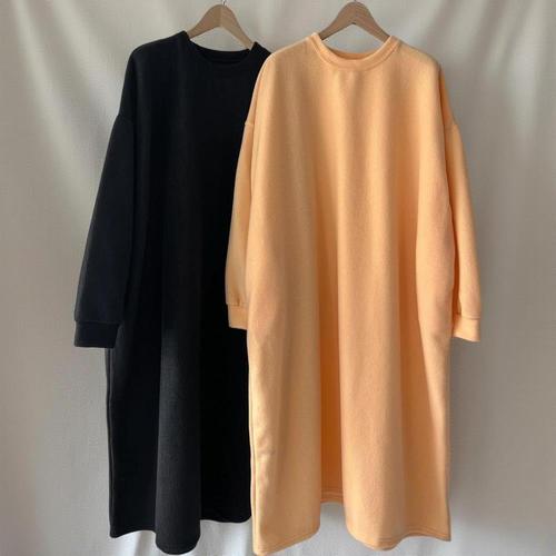 [미라클세븐]여성 빅사이즈 임신복 심플 포켓 후리스 겨울 롱드레스