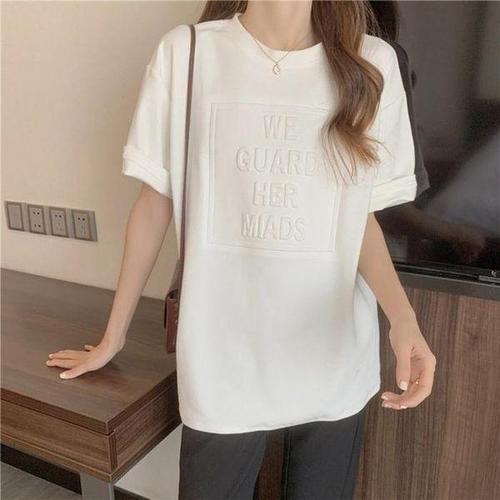 [셀러허브_여성트랜드패션]여성 반팔 ERK-326 글자 라운드넥 티셔츠 입체