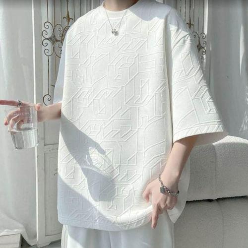 [에이치플러스몰]남성 텍스쳐 입체 패턴 단색 라운드 여름 반팔 티셔츠