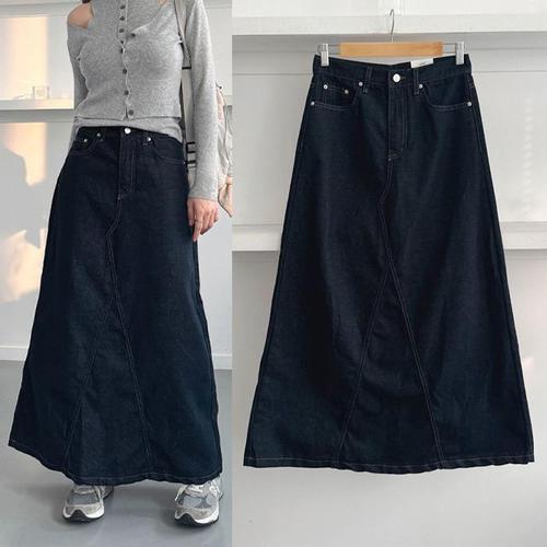 [잇백잇슈]캐주얼롱데님스커트 깔끔 예쁜 국내제작 데일리 여성