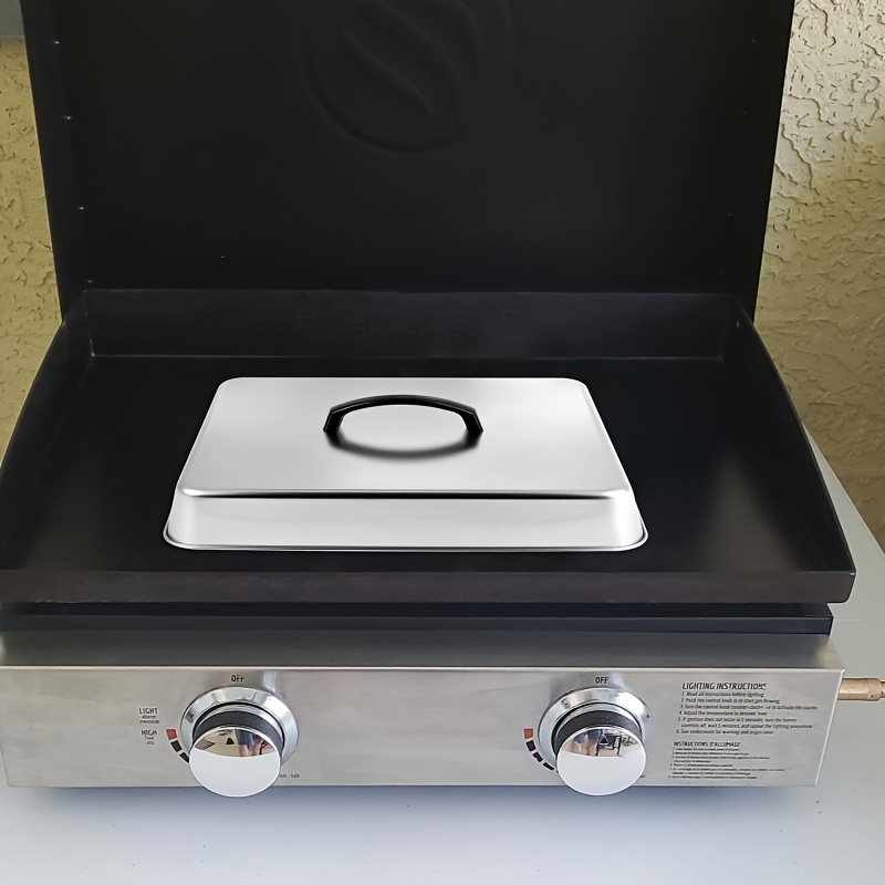 TEMU 스테인리스 스틸 직사각형 그릴 커버 뚜껑, 직사각형 금속 찜기 커버, 평면 베이킹 팬 액세서리, 실내외 캠핑에 적합 - 그릴, 바비큐, 주방 및 야외 요리에 적합