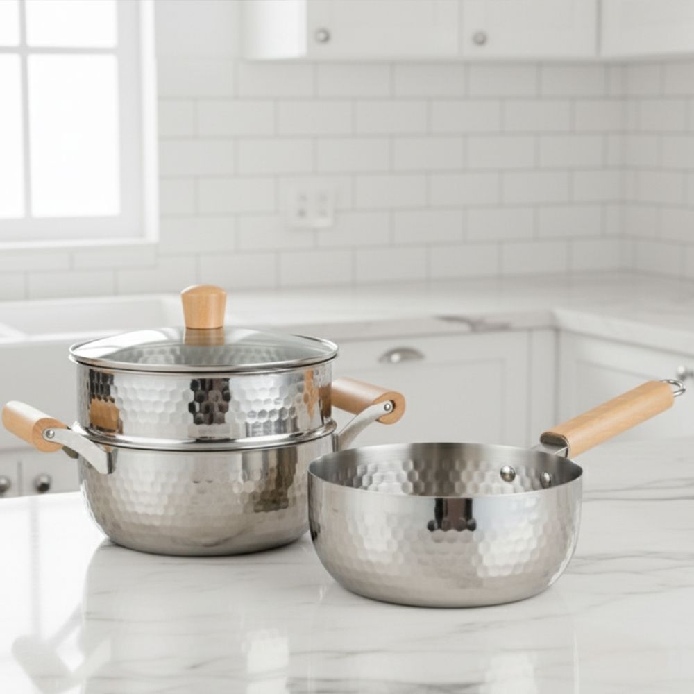 레트로 스텐냄비 4종세트(편수냄비20+양수냄비20+찜기+유리뚜껑)