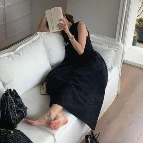 [다잇템_패션]여성 사이드포켓 롱 포인트 슬리브리스 원피스
