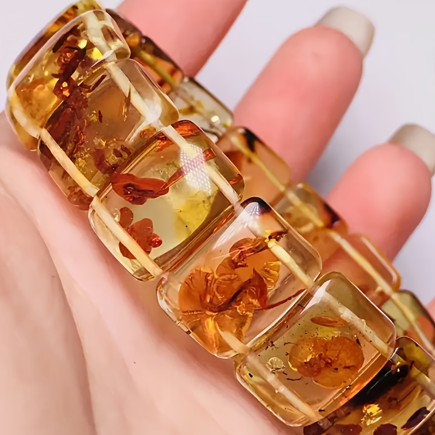 TEMU 천연 호박색 비즈 팔찌 - 스타일, 투명하고 , 남녀공용 클래식 디자인, 추수감사절, 크리스마스, 할로윈 및 기념일 선물로 이상적, 데일리 웨어 팔찌 | 스타일 팔찌 | 천연 호박색 비즈, 호박색 팔찌