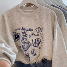 DODLXL 자수 하트 숏 맨투맨 긴팔 티셔츠