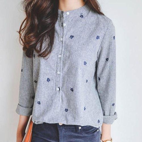 나뭇잎 자수 데일리 셔츠 스트라이프 남방 오피스룩 WEE92B0