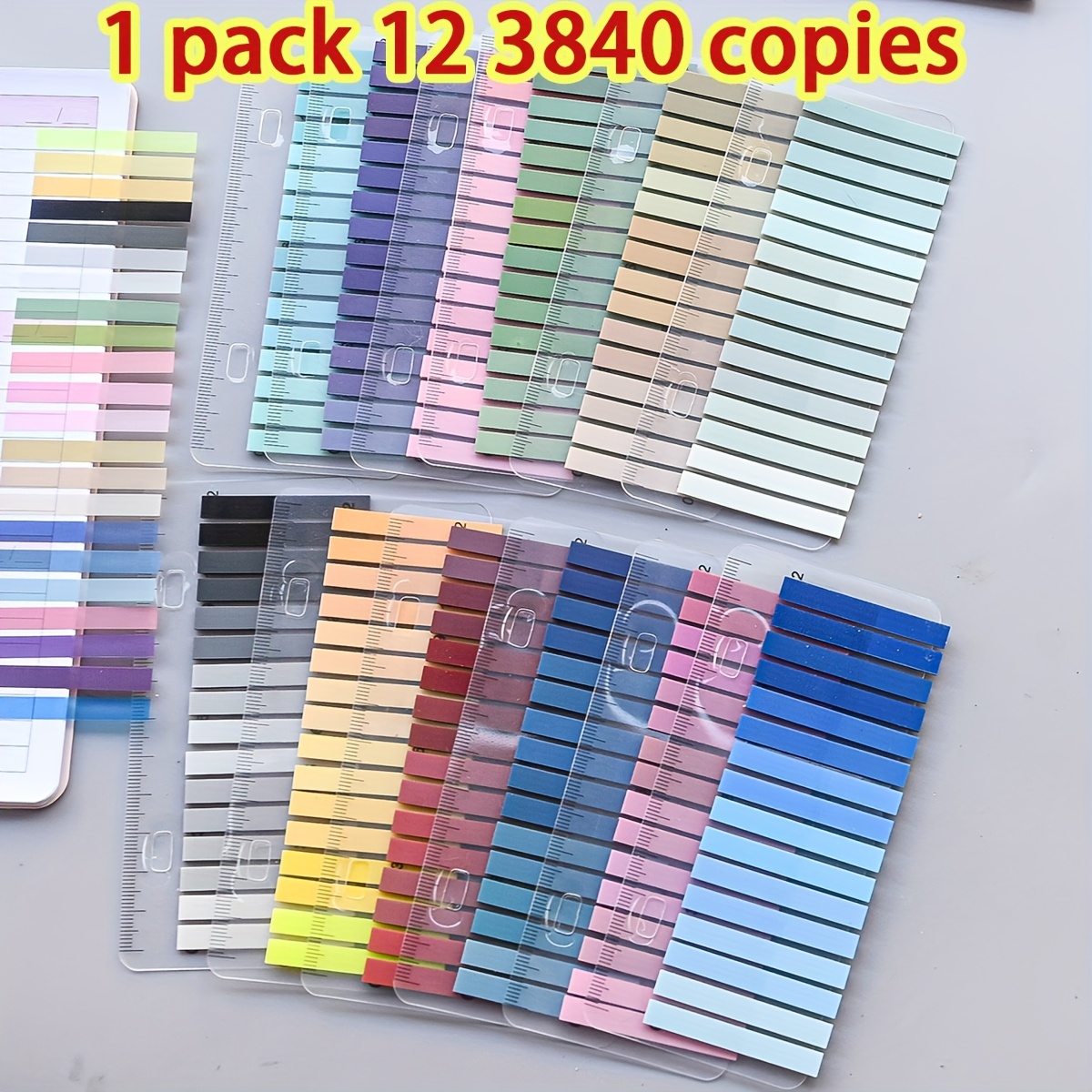 TEMU 12종, 1팩 3840매 - 초미세 PET 바코드 접착식 반투명 인덱스 스티커 (스타일당 320매), 교재 또는 사무용 문서 마킹에 완벽