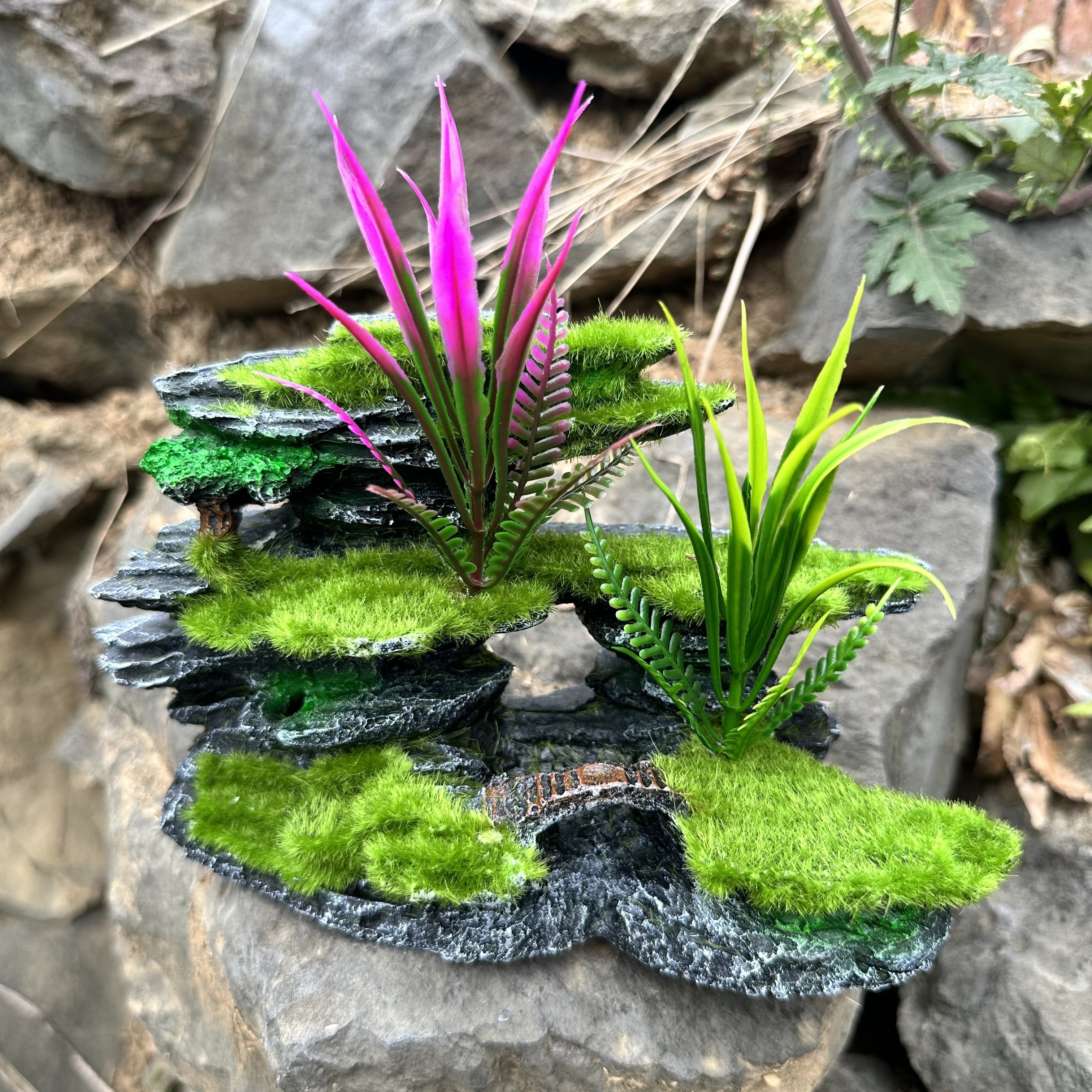 TEMU 1pc 생동감 있는 인공 산경관 장식 - 아쿠아리움을 위한 현실적인 수지 암석 형성, 푸른 녹색 이끼와 미니어처 나무, 평온한 아쿠아스케이프를 만들기 위한 이상적인 선택, 아쿠아리움 장식 | 자연스러운 디자인 | 세부적인 텍스처, 아쿠아리움 장식