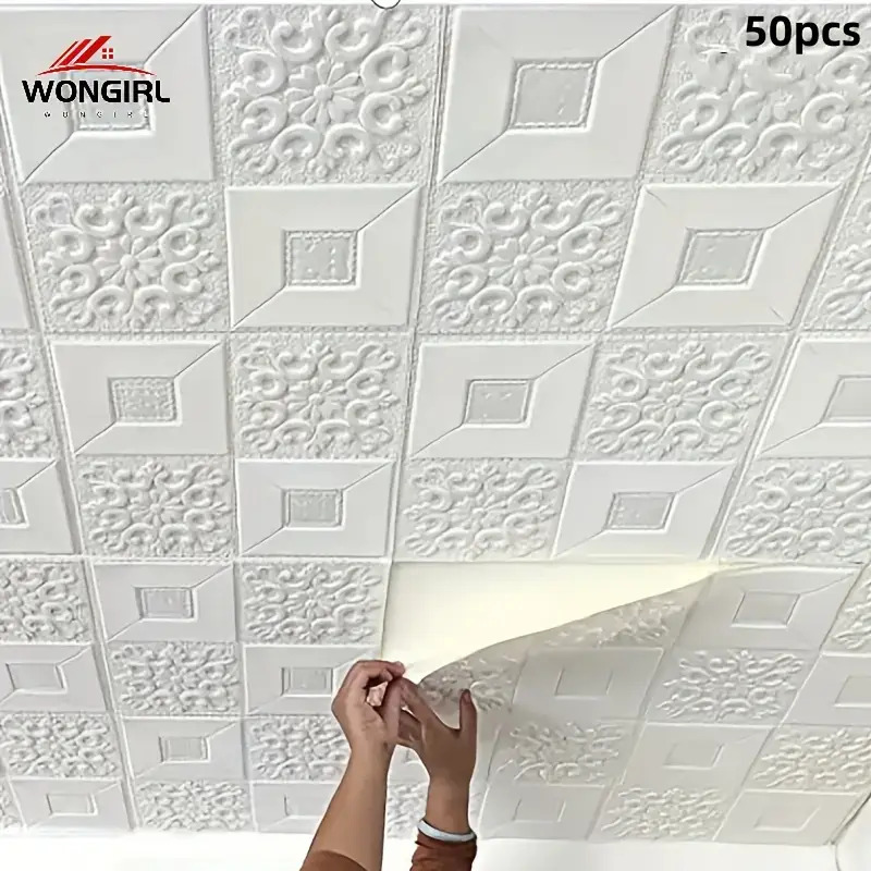 TEMU 50/10매 35cm 3D 벽 스티커 사각 자가 점착 벽지 폼 얼룩 방지 천장 스티커 거실 침실 발코니 주방 간편 설치