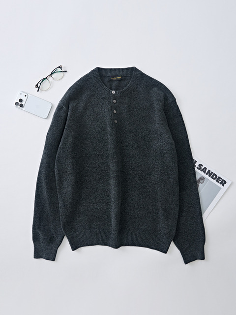[아날로그무드] 벨로아 리파인드 헨리넥 라운드 니트 (차콜)