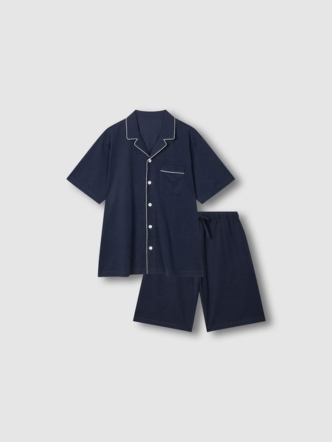 [자주 라이프웨어] [JAJU/자주] 남 소프트 시어서커 반팔 파자마 셔츠_네이비