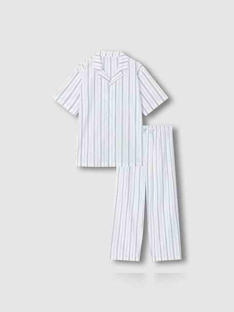 [자주 라이프웨어] [JAJU/자주] 남 스트라이프 반팔 10부 파자마 세트_오프 화이트