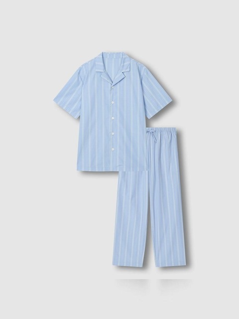[자주 라이프웨어] [JAJU/자주] 남 스트라이프 반팔 10부 파자마 세트_라이트 블루