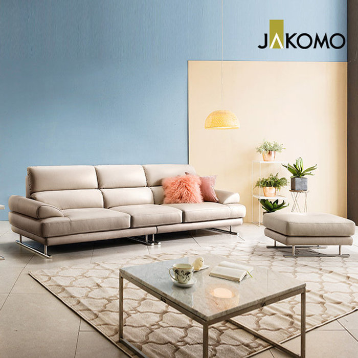 [자코모]엘로아 4인 천연면피 소가죽 소파+스툴