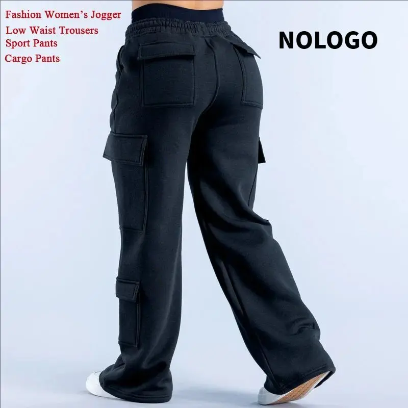 NOLOGOMen's 캐주얼 바지 여러 개의 포켓 아메리칸 스타일 작업 바지 여성 로우 웨이스트 벨트 스트레이트 레그 와이드 레그 팬츠