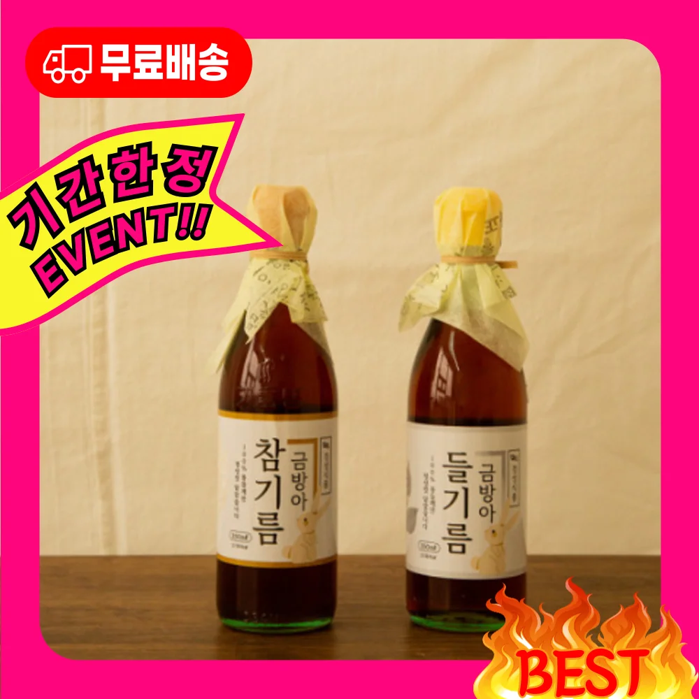 당일 착유한 국산 들기름 300ml+생들기름 300ml 가정용 저온압착 들기름