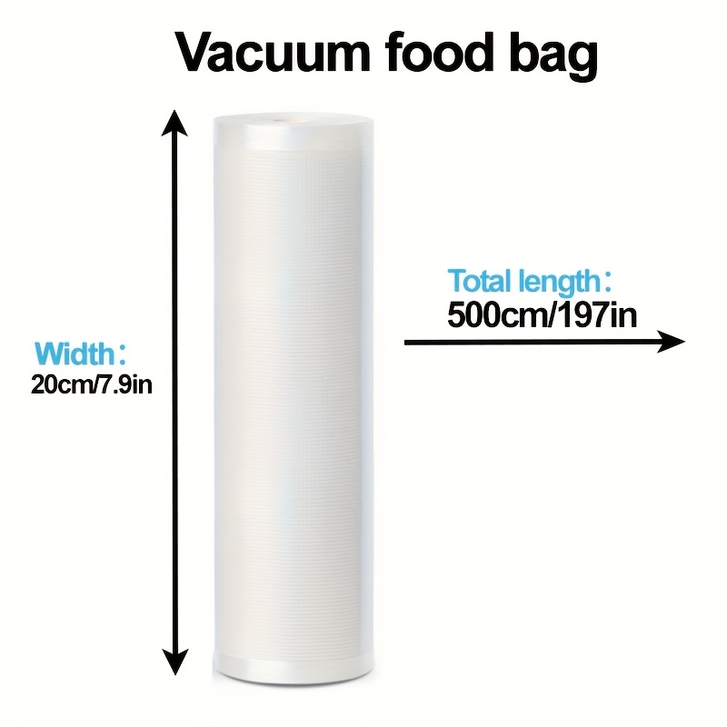 TEMU 5M 진공 포장 식품 랩 1 롤 - 신선한 고기, 해산물 및 채소에 적합한 다양한 크기 | 쉽게 자르고 봉인, 식품 보관을 위한 필수품, 고성능 진공 포장 식품 보존 가방.