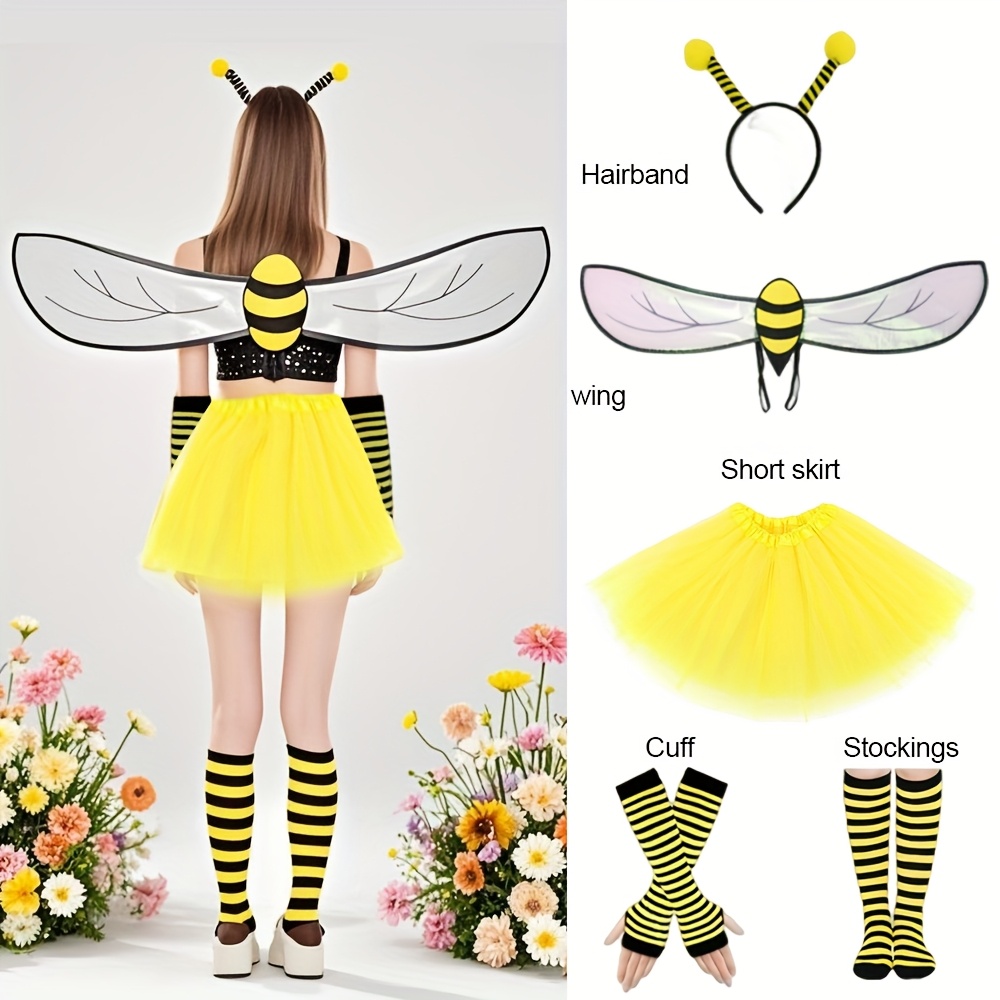 TEMU GDBY 여성용 벌 비 코스튬 5종 세트 - 튜튜, 벌 날개 의상, 헤어밴드, 스타킹 & 장갑 포함 - 할로윈, 생일, 카니발, 미혼녀 파티 코스튬 (세탁기 사용 가능)