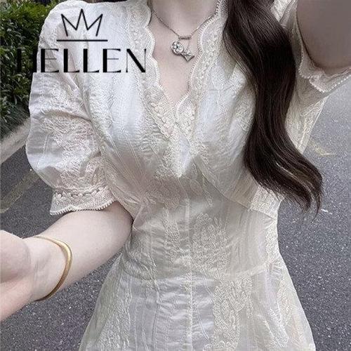 여성 여름 반팔 원피스 캐주얼 원피스 기질 고급스러운 소향풍 자카드 반팔 원피스 ZZL