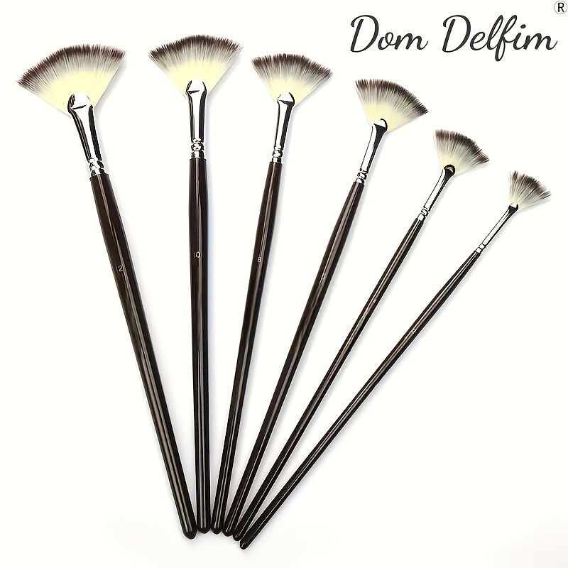 TEMU 프로페셔널 팬 브러쉬 세트 - 6pcs 나일론 브러시 (수채화 & 아크릴 페인팅용) -