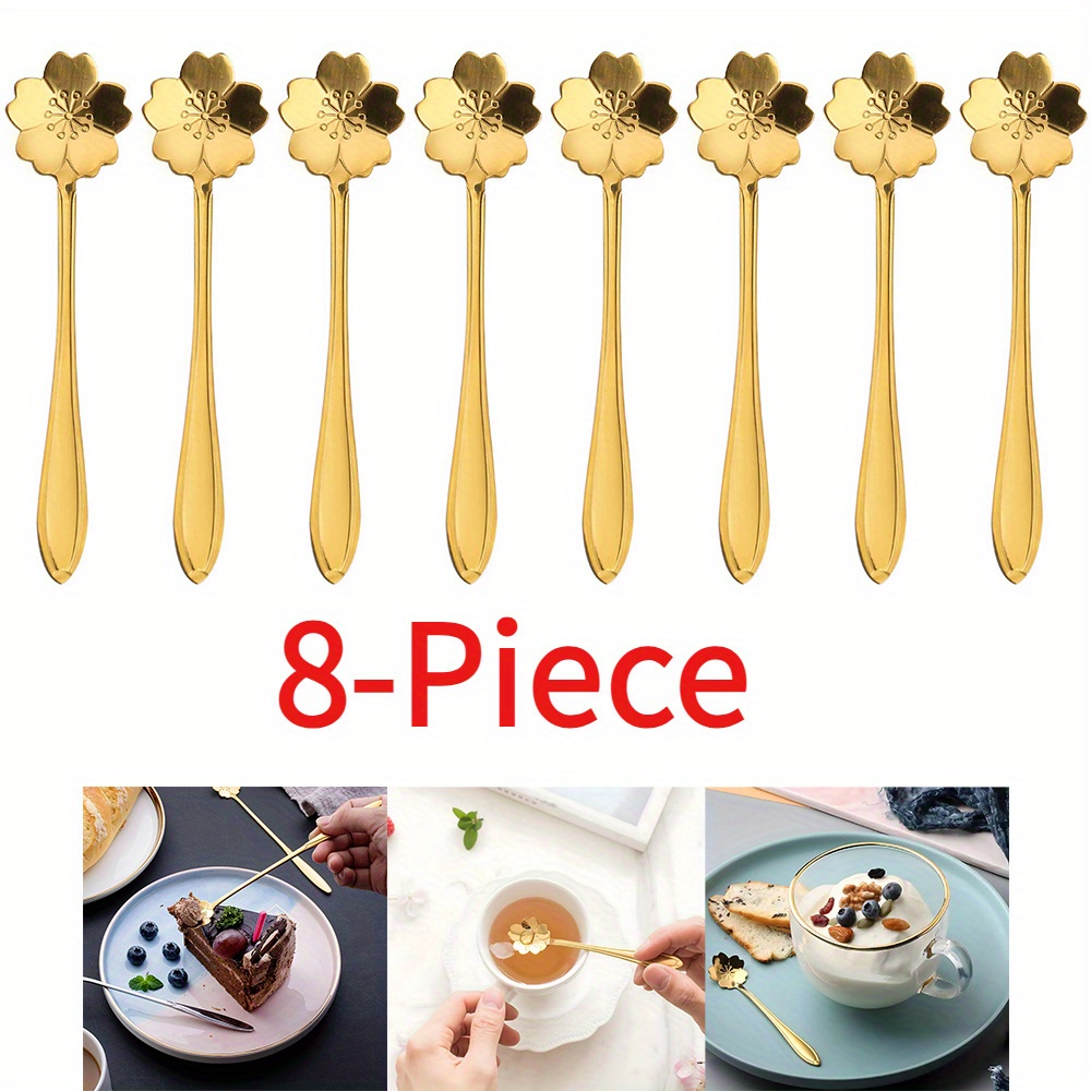 TEMU 8개 골든 체리 블라썸 스푼 세트. 금속 체리 블라썸 텍스처 디자인. 호텔, 레스토랑, 모임, 웨딩&파티용. 디저트, 케이크, 커피 저어주는 티스푼/소형 스푼