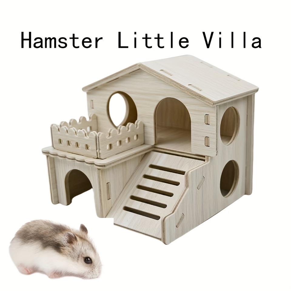TEMU 햄스터 나무 하우스 은신처, 낮잠과 숨는 작은 빌라, 작은 햄스터에게 적합, 조립 필요, 햄스터 하우스, 햄스터 서식지, 햄스터 쉼터, 햄스터 은신처