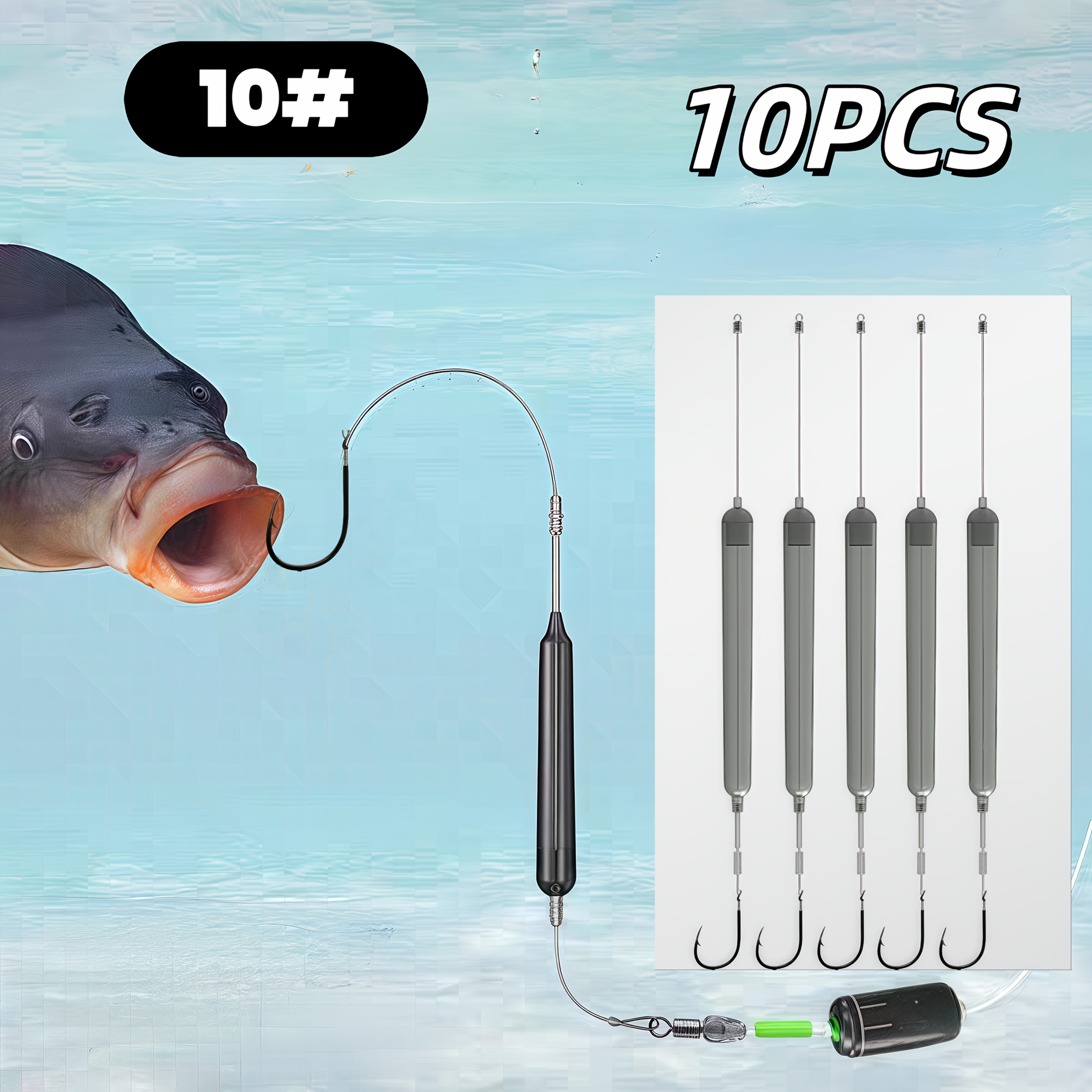 TEMU 10개입 바닥라인 낚시바늘 세트 + 플로팅 루어 키트, 초강력 날카롭고 관통성 뛰어난 내식성, 담수 및 해수낚시에 적합