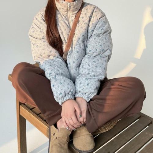 |CCJ6C7D|여성용 일상 러블리 꽃무늬 캐주얼 숏 패딩