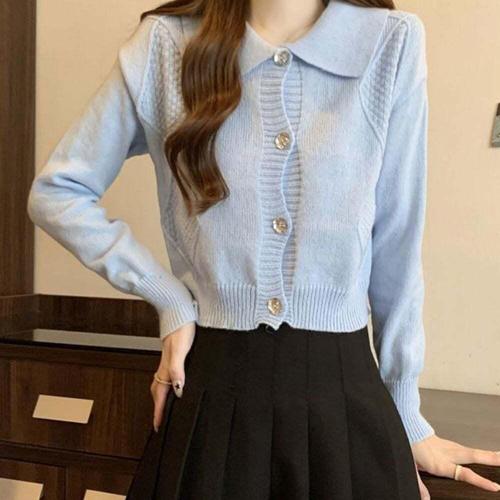 [셀럽하우스]여성 MBOR0485 왕카라 러블리 세미크롭 버튼 니트 가디건