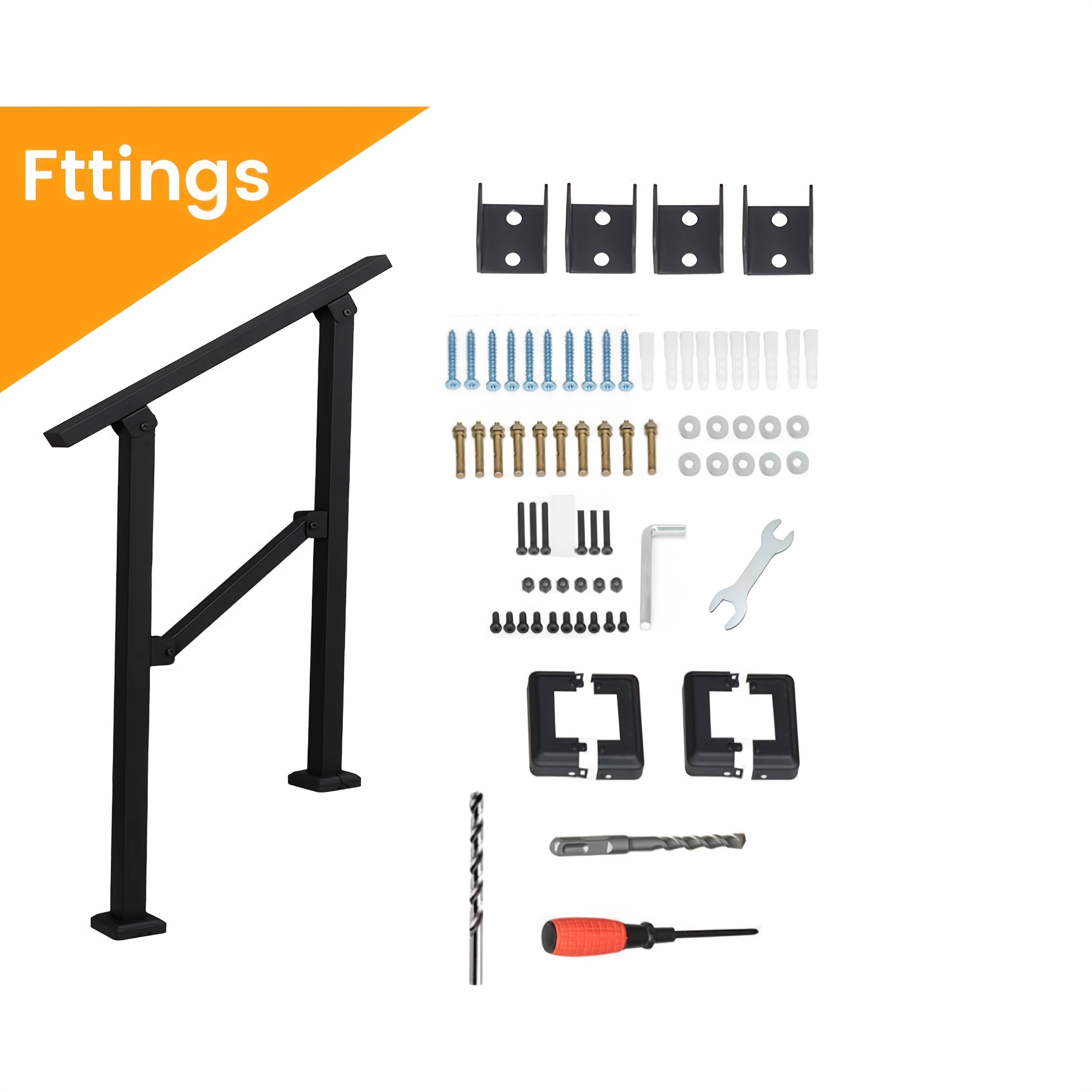 TEMU 1개 튼튼한 스틸 실외 계단 난간, 각도 조절 가능 - 2-3단 안전 난간, 미끄럼 방지 계단 난간 (가정, 정원, 파티오, 발코니용) - 내구성 있는 내후성 디자인, 실외용 계단 난간, 파티오 안전 난간