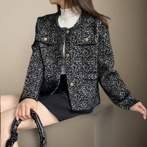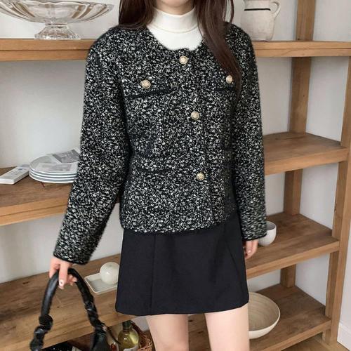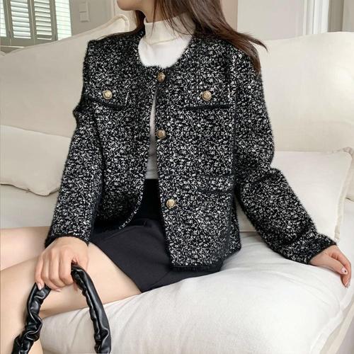 [옷자락]여성용 레이온 트위드 퍼 자켓 골드버튼 블링 정장 자켓