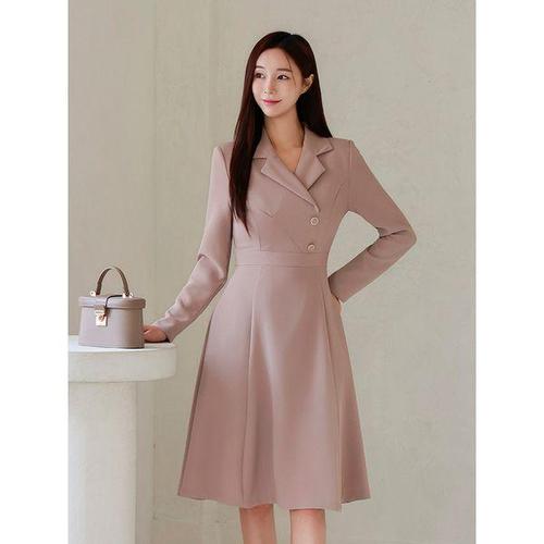 [드리다]여성 카라 플레어 슬림핏 정장 원피스 하객룩 모임 오피스룩 상견례