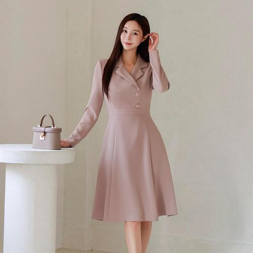 여성 결혼식 하객룩 정장 원피스 카라 벨트 긴소매