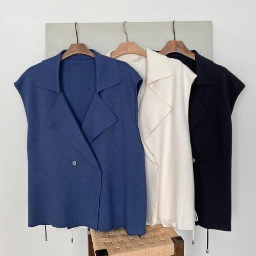 [다잇템]여자 정장조끼 오버랩 봄옷 드로우코드 니트 (9647361A)