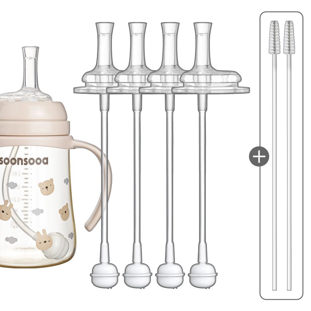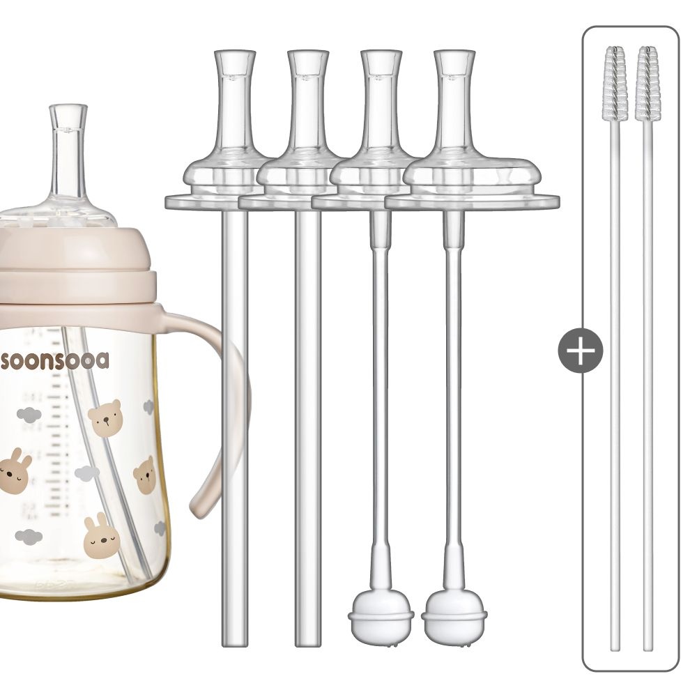 2+2 역류방지 빨대꼭지8+빨대4+추빨대4+빨대솔2 더블하트 그로미미 호환 리필 젖병 빨대