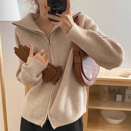 [셀럽하우스]봄 WMCH0595 간절기 캐주얼룩 하이넥 카라 니트 집업 가디건