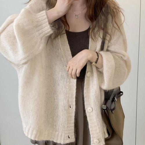 M1 회색 니트 여자 심플 봄옷 루즈핏 쇼트 카디건 스웨터 보카시넥 JEN1