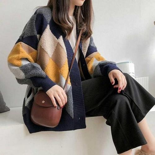 [주식회사 브이와이][JHQRLU99_4B]가디건 여성 아가일패턴디자인 봄가을 스타일 (23863733A)
