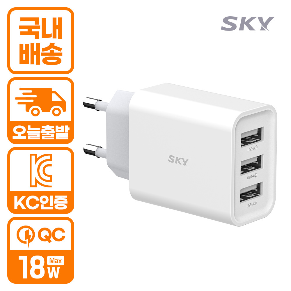 TEMU Sky File C3 18W 3포트 USB 고속 충전 어댑터