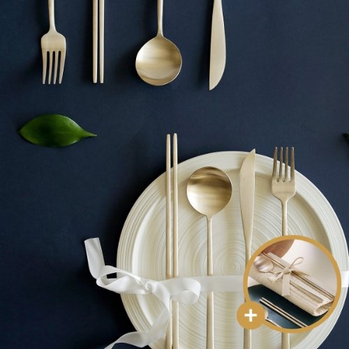 [비밀특가]놋담 방짜유기 달 커트러리 2인 풀세트 10P+누빔 수저집 증정