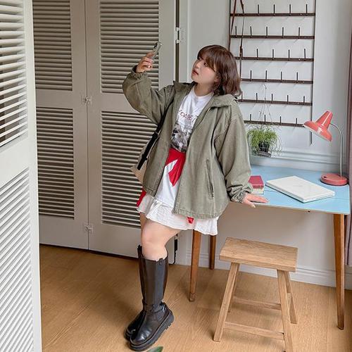 [빅사이즈]이블렛 퓨메인 스트링 코튼 후드 자켓 제이스타일